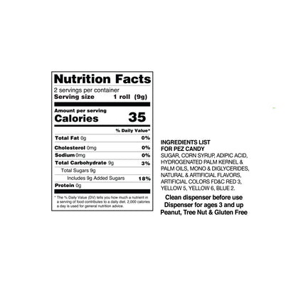 - Candy Refills Included - Each PEZemojis PEZ Dispenser includes two PEZ candy refills. PEZ Candy is made in the U.S.A. and is peanut, tree nut & gluten-free. For Ages 3 & up.